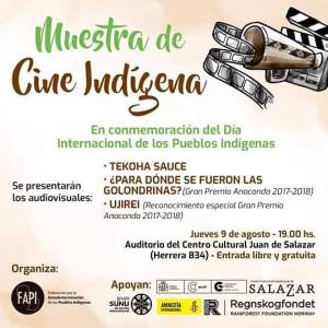 Hoy 9 de Agosto, en el marco del día internacional de los Pueblos Indígenas se llevará acabó la muestra de cine Indígena en el centro cultural de España Juan de Salazar, dirección: Luis Alberto de Herrera 834, a las 19 hs la entrada libre y gratuita.